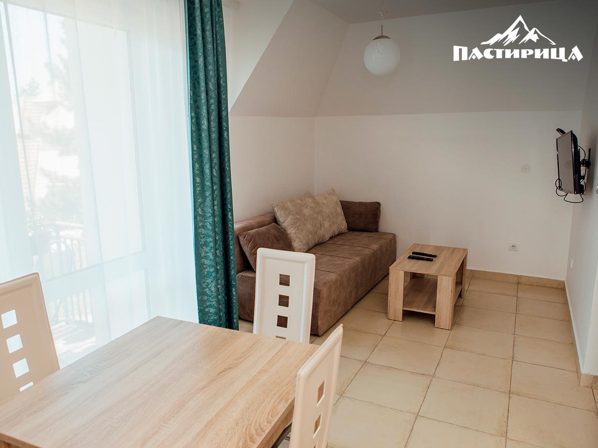 Apartman Pastirica 5 Apartman Pastirica 5 Sve sobe i apartmani imaju centralno grejanje, uvek toplu vodu i bežični internet, Smart televozore, kao i komplet opremljene kuhinje sa ugradnim pločama, frižiderima, aspiratorima…