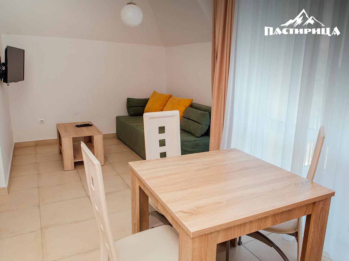 Apartman Pastirica 6 Apartman Pastirica 6 Sve sobe i apartmani imaju centralno grejanje, uvek toplu vodu i bežični internet, Smart televozore, kao i komplet opremljene kuhinje sa ugradnim pločama, frižiderima, aspiratorima…